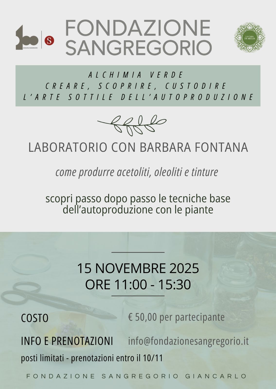 Laboratorio di scultura con Barbara Fontana, naturopata e floriterapeuta: come produrre mieli aromatizzati, acetoliti, oleoliti e tinture.
